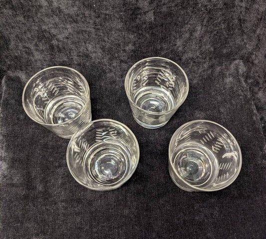Short Mid Century Modern Cut Glass Tumblers - All 4 Sold as set