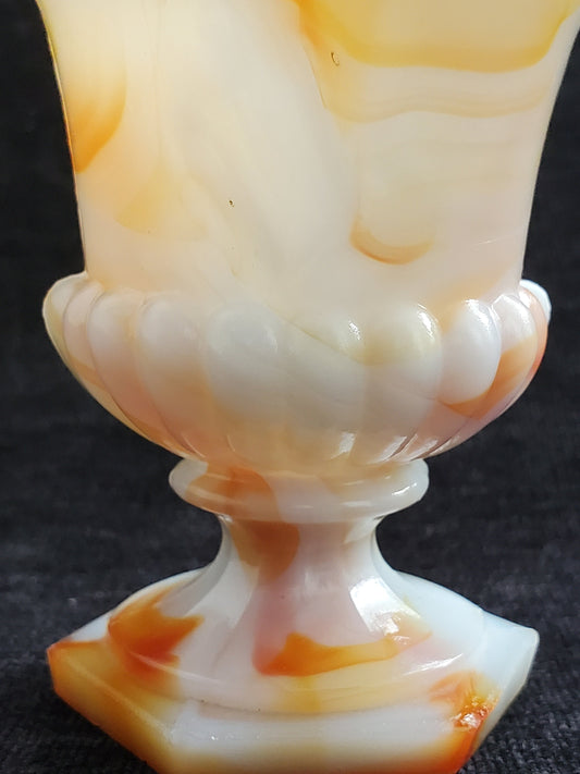 Slag Glass White/Orange Tiny Urn Shaped Container