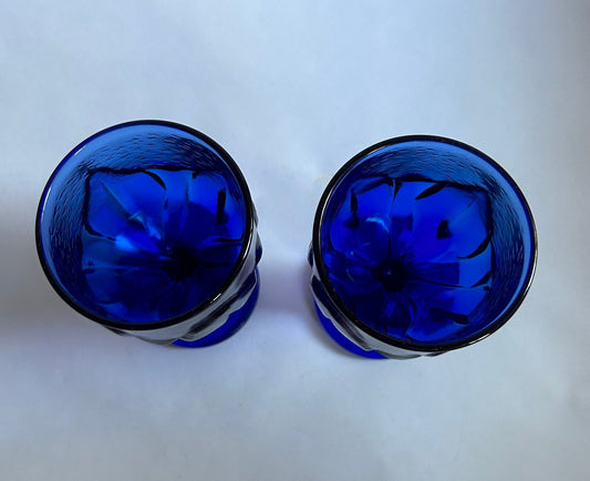 Tiffin Franciscan Mouth blown Cobalt Blue Goblet - Vintage Franciscan Glassware With Leaf Pattern - 2 sold individually