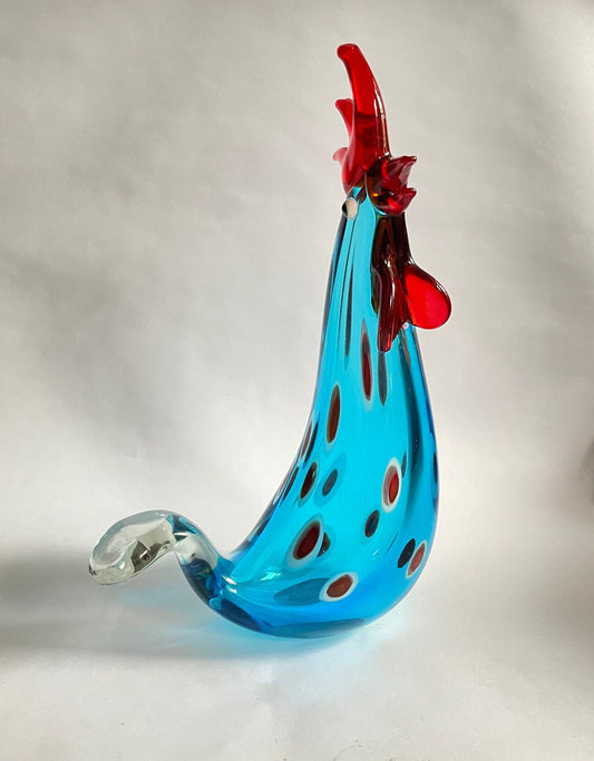 Wonderful Art Glass Rooster - - Millefiori Infused in Mediterranean Blue Glass - Kitchen Chicken Decoration