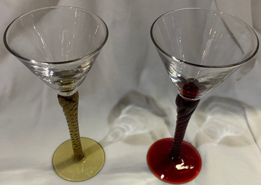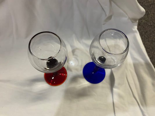 Hand Blown Italian Glass Cordials - Set of 2 Red and Blue Bases - Vintage 1970s