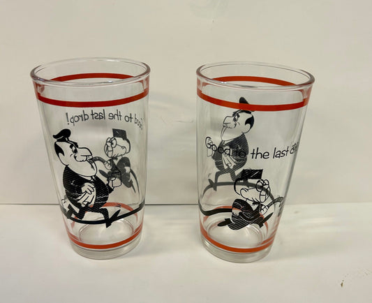 Hazel Atlas Gay Fad 1950s Glasses - Vintage Painted Bartender 12 0unce Tumblers - 4 sold individually - Cartoon Painted Characters