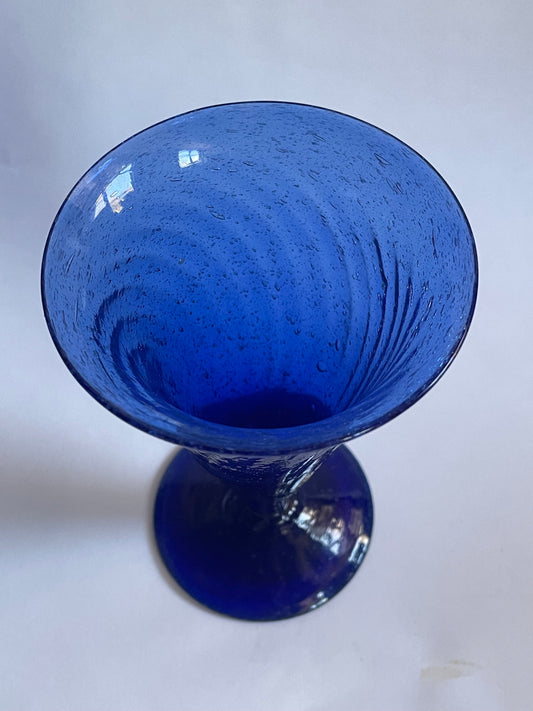 Hand Blown Swirled Cobalt Blue Fluted Glass - Fluted Wine Glass - Fluted Art Glass - Fluted Vase Glass - Lots of Bubbles in 5.2" tall Glass