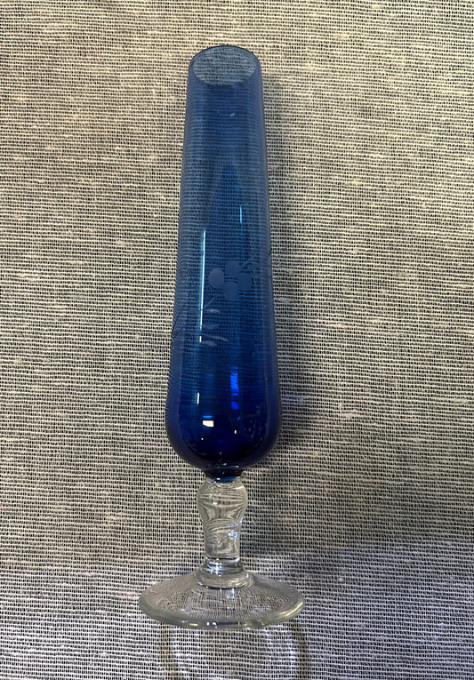 Hand Crafted Cobalt Bud Vase Etched with Blossoms- Etched Glass- Cobalt Blue- Bud Vase