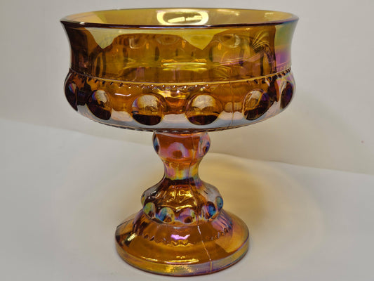 Indiana Iridescent Carnival Glass - Kings Crown Orange Amber Compote - Carnival Glass Candy Dish - Mid Century Modern 1970s