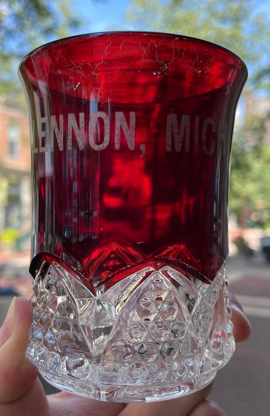 Lennon, Michigan Souvenir Ruby Red Stained Glass Tumbler