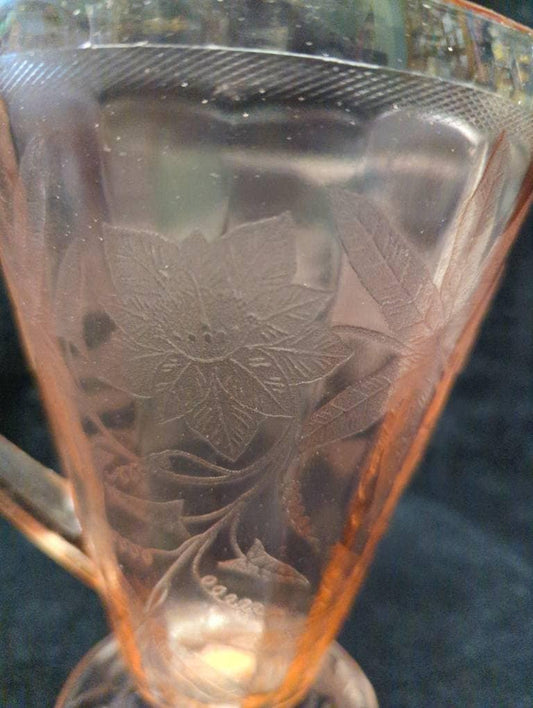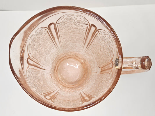 Jeannette Blush Pink Cherry Blossom Glass 36 ounce Pitcher- Depression Glass Floral Berry Pattern - Pink Jeanette Depression Glass Pitcher