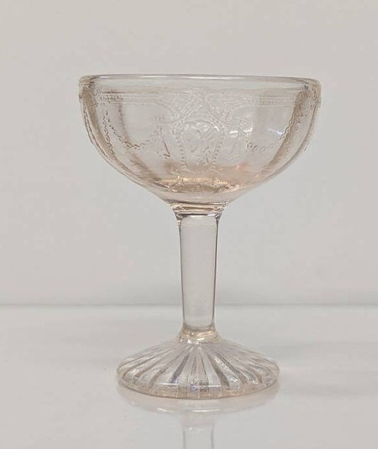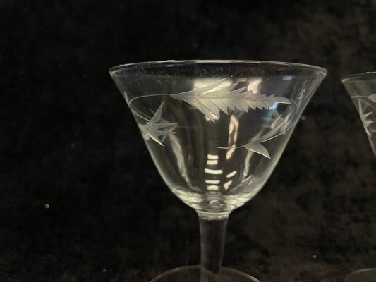Mid Century Crystal Etched Champagne or Sherbet Glasses - Engraved Design - Set of Two