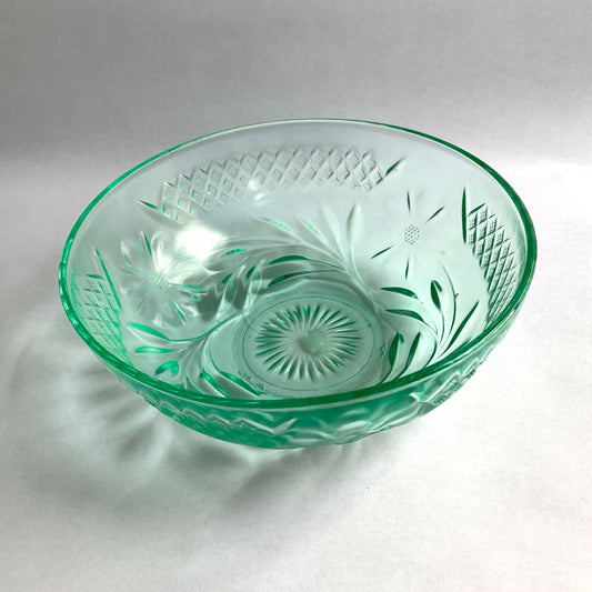 Hazel Atlas Uranium Glass Sherbet Set - Hazel Atlas Green Depression Vaseline Glass Floral and Diamond Set