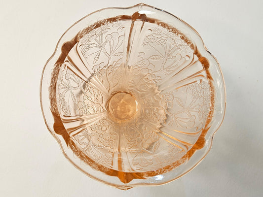 Jeannette Blush Pink Cherry Blossom Pattern Pedestal Dessert Cup - 2 Available Sold Individually - Pink Depression Glass Embossed Dessert Cup