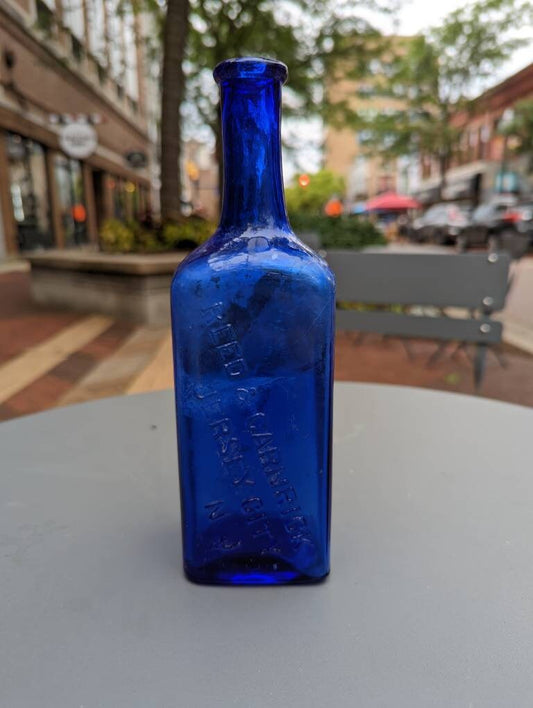 Cobalt 1890s Reed & Carnrick Peptenzyme 9" Bottle, Jersey City, New Jersey - Vintage Glass Bottle