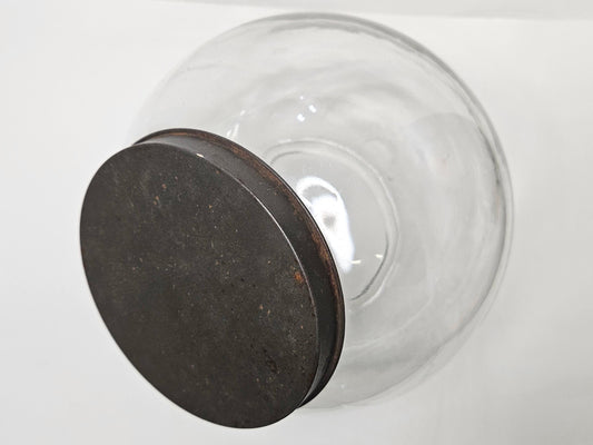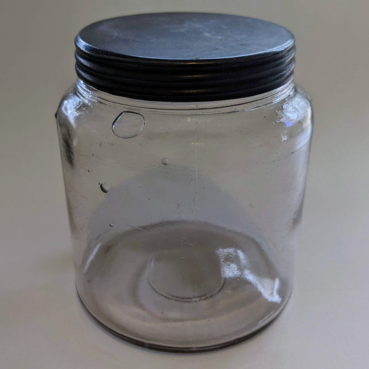 Lidded Screw Top Glass Jar - mouth blown early 1900