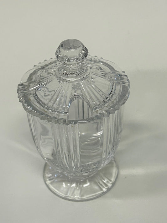 Clear Depression Glass Mustard Jar With Lid 3.5" tall - 1920s tiny Mustard jar -Perfect Size for Serving on Tray - Use with Tiny Spoon.