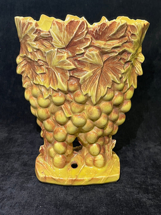 McCoy Grapes and Leaves Vase Yellow and Brown - Vintage McCoy Vase