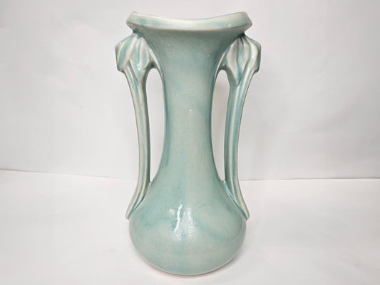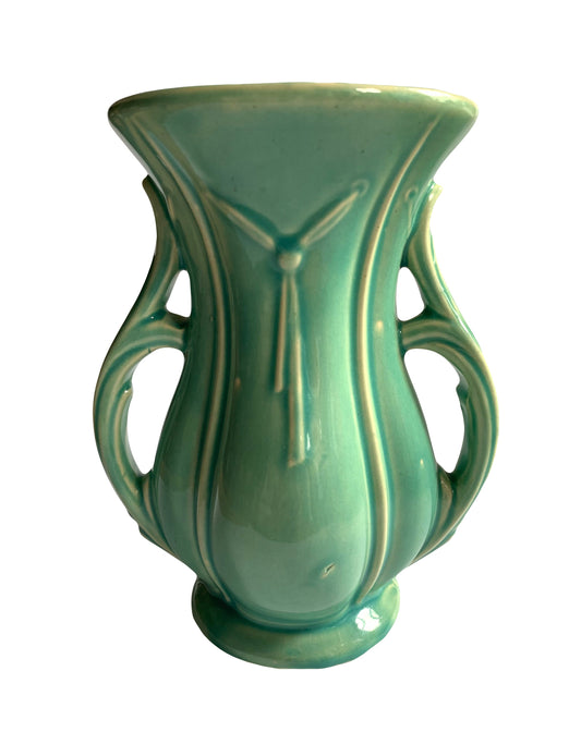 McCoy 1940s Matte Turquoise 9.5" H Vase - Two Handled McCoy Vase- McCoy Vase with Art Deco Style - McCoy At Pottery - Elegant Vase