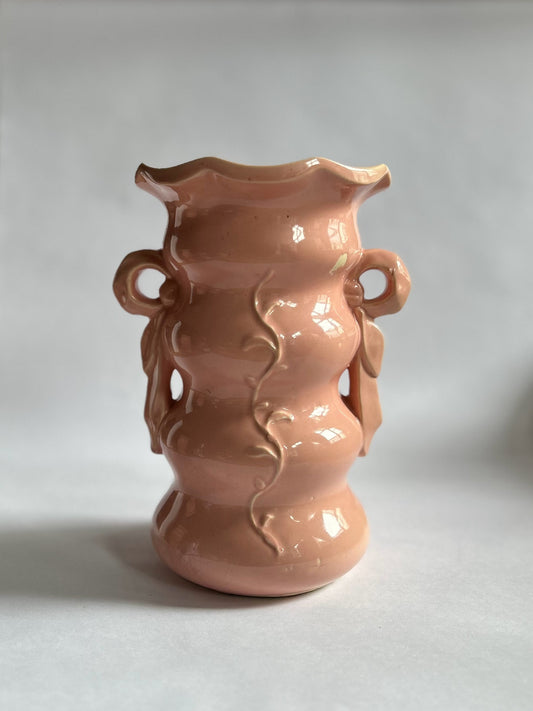 McCoy Large Pink Pottery Vase - McCoy Ribbons and Vines Vase - Vintage 1940's