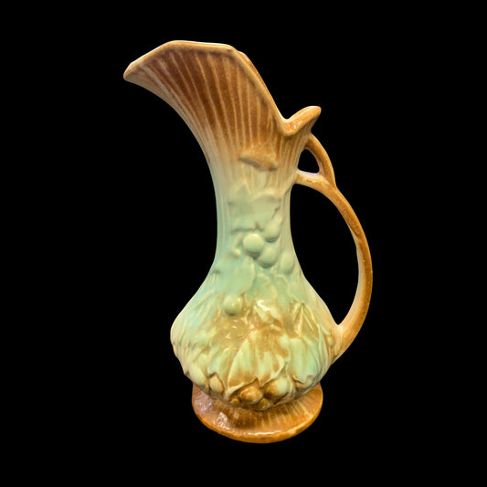 Aqua and Brown McCoy Pottery Ewer or Pitcher - Vintage Ceramic Ewer with Aqua and Brown Grape Motif - Vintage 1940s