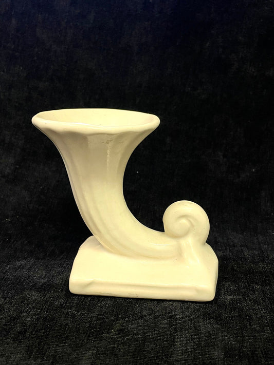 McCoy Miniature White Cornucopia Flower Holder - Rare Vintage McCoy 1940s Pottery