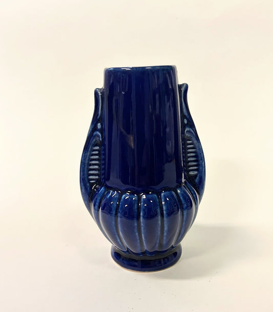 Cobalt Blue Art Deco Pottery Vase - Art Deco 1920s Style- Small 4.25"T Deco Vase - Perfect Decoration for a Desk top - Navy Blue Decor