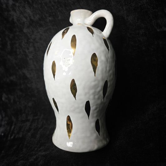Italian Mid Century Modern Hand Thrown White and Gold Splashed Ewer/ Vase -Hand Painted Italian Decorative Ewer Vase -Retro Italian Art Vase