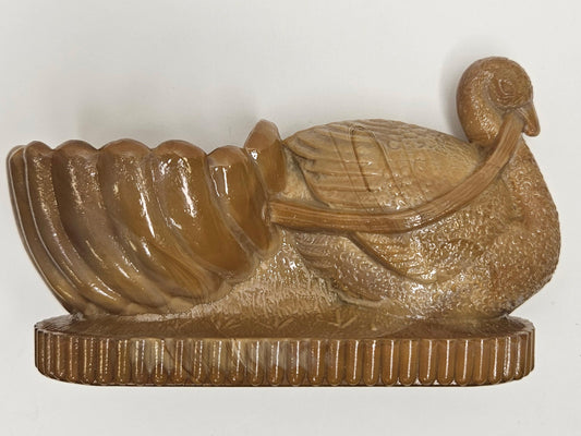 Carmel Slag Glass Swan Pulling a Shell - Victorian Slag Glass Salt- Carmel Glass Salt Dish - Brown Slag Glass Swan Pulling Shell - 5" Long