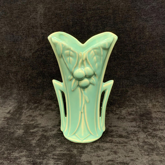 Aqua Blue Leaves and Berries with Handles McCoy Vase - 5.75" Tall McCoy Vase -