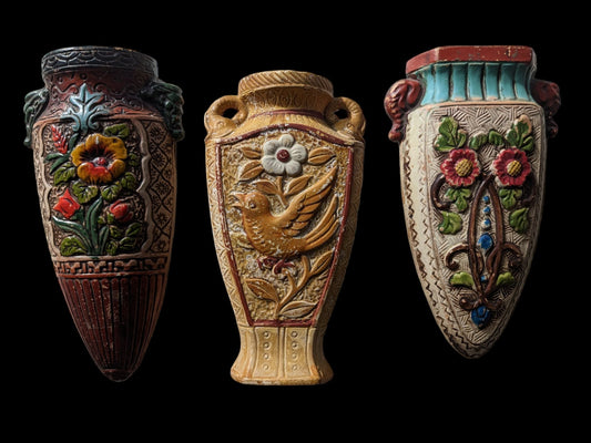 Pottery Wall Pockets - Made in Japan - Retro Birds and Nature Style - Sold Individually
