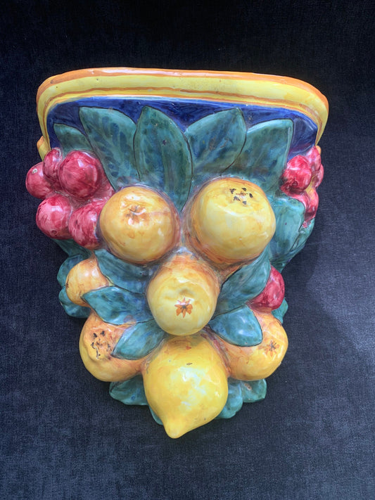 Italian Hand Painted Wall Planter with Lemon and Grape Design Signed D&G of Deruta Italy