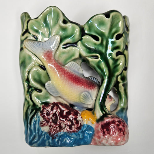 Fish In Seaweed and Coral Wall Pocket - Perfect in Florida - Island Decor - Retro Mid Century Decor - Beautiful Condition and Colors