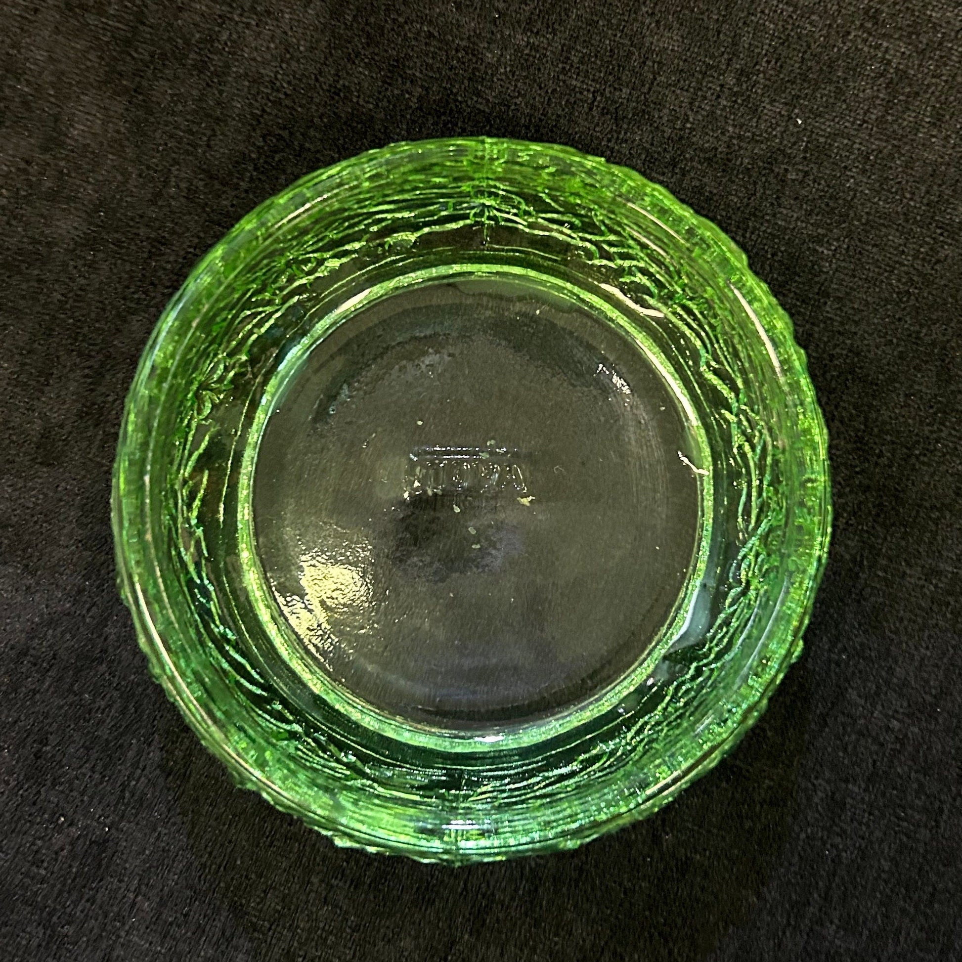 Elevate your home decor with this lovely bright green Avon Glass Candle Holder. The beautiful green glass is embossed in a floral bouquet pattern. The timeless design blends seamlessly with various decor styles, making it a versatile addition to your home. Whether you use it to create a cozy ambiance during a relaxing bath, or a counter candle holder for the kitchen, it will be serviceable and fit most pillar candle bases.