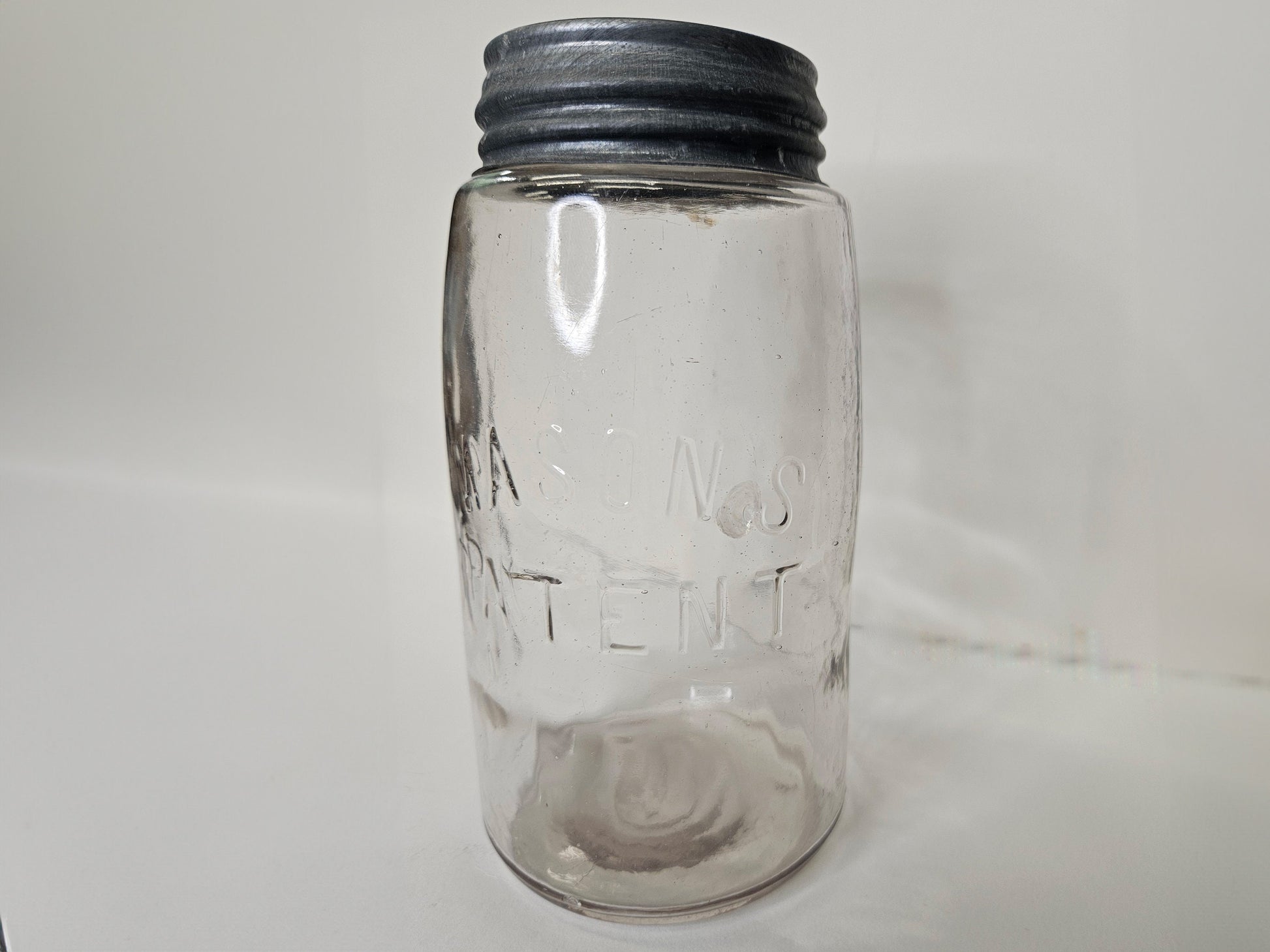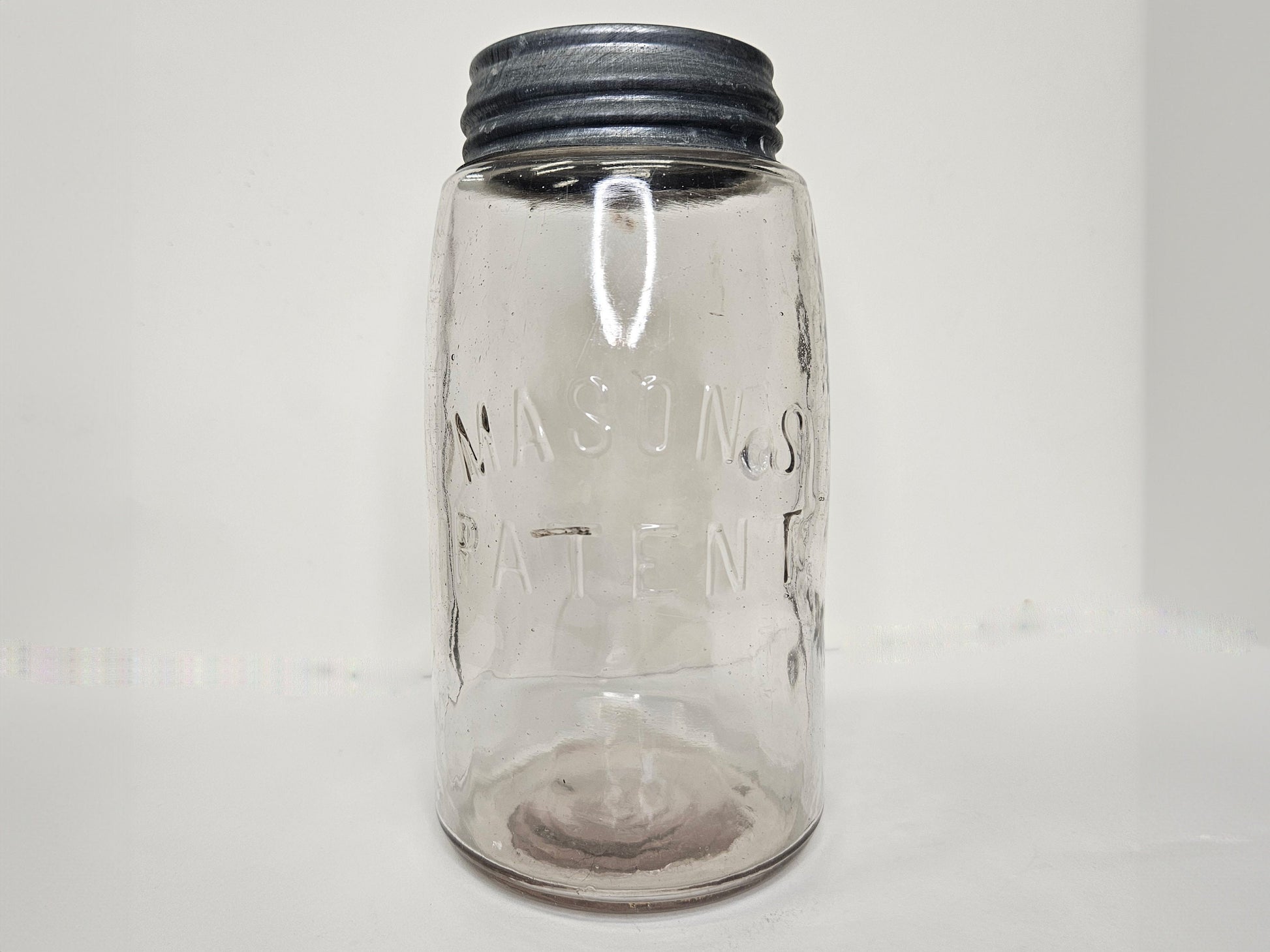 Masons Patent Jar And Lid - Mason Jar with Square Shoulders - Pale Lavender Glass Mason's Patented Canning Jar - Hard To Find Color in Qt Jar