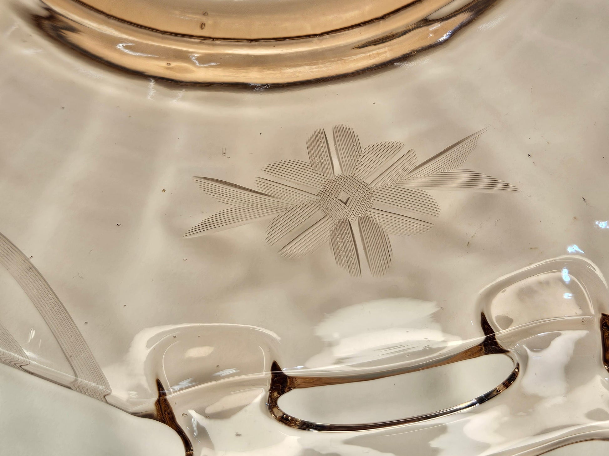 Molly Pink Imperial Glass - Handled 10.5" Platter- Etched with Floral and Swag Design- Pink Floral Depression Glass Tray for Wedding Shower