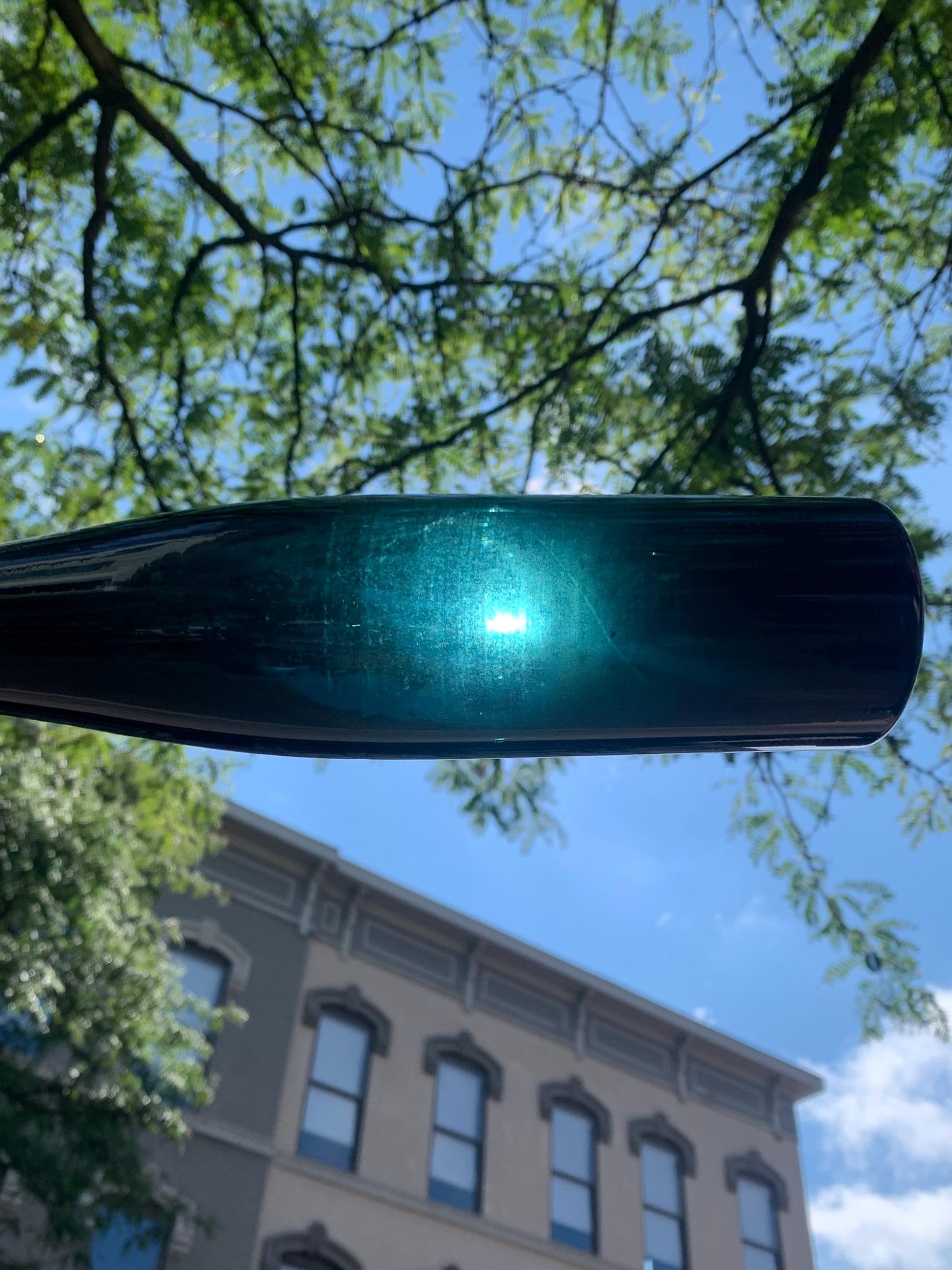 Mouth Blown and Turned Dark Blue Wine Bottle - Late 1800s Blue Wine Bottle - Rare Blue Wine Bottle with Cork and Wire Top