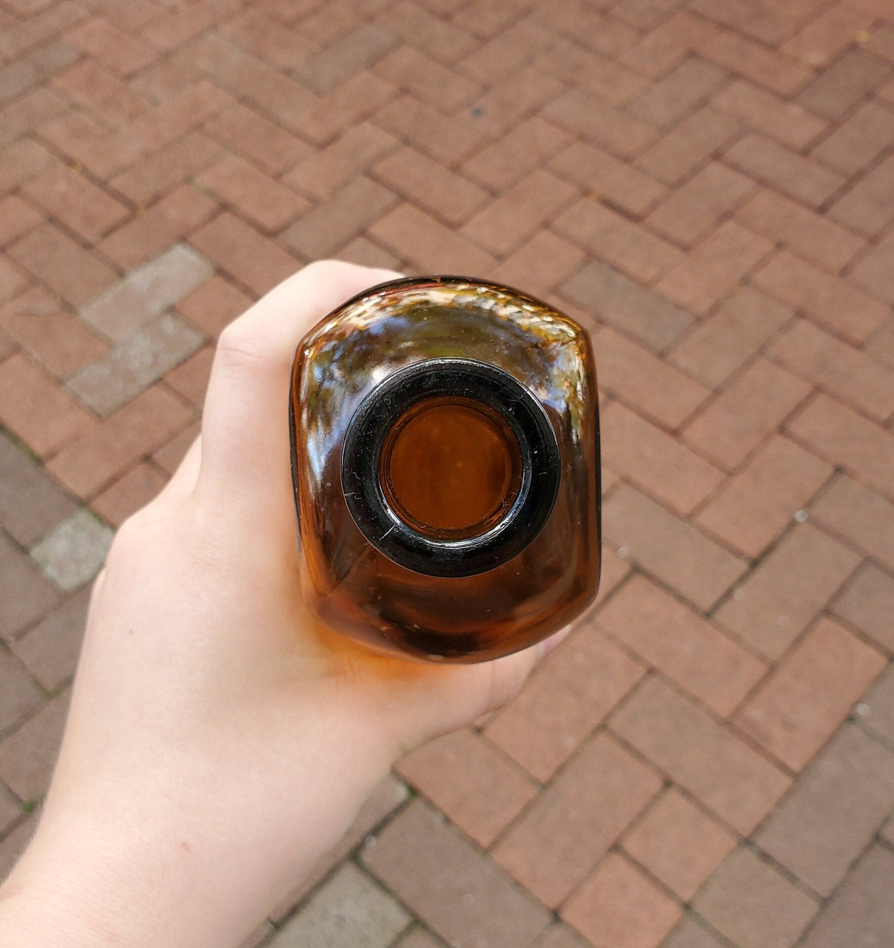 Ozomulsion Amber Glass Bottle Cork Top, late 1800s