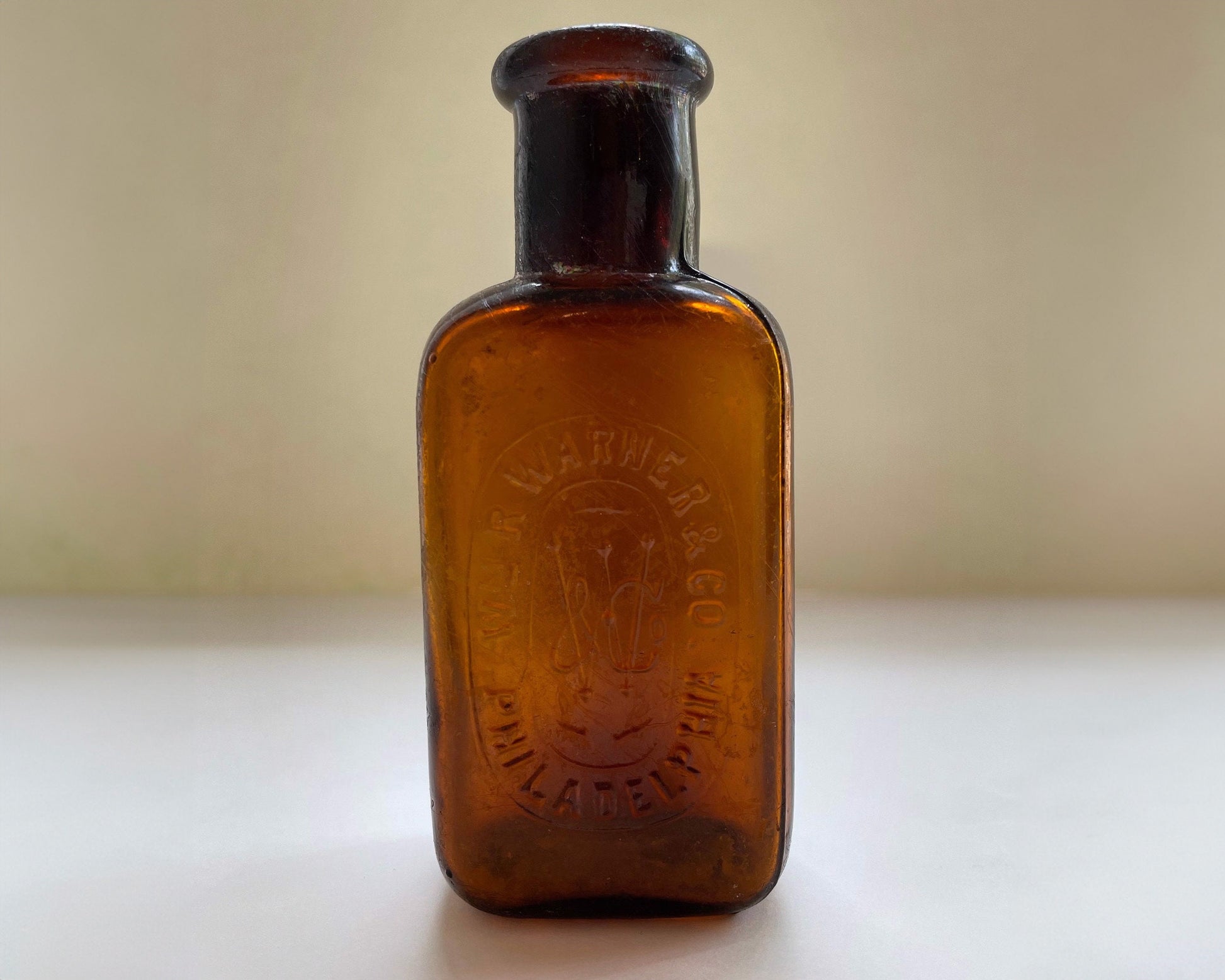 This bottle was hand-blown in the 1800s by the WMR Warner Company in Philadelphia. The glass is a little cloudy, there are scratches around the bottle, and there is a small chip on the side, see photos. The bottle is engraved with, “WMR Warner & Co. Philadelphia.” The William R Warner Co. was a drug store established in Philadelphia, Pennsylvania, in 1866. Over the years the company was acquired and purchased by other companies in the health and cosmetic industry stationed around the US.