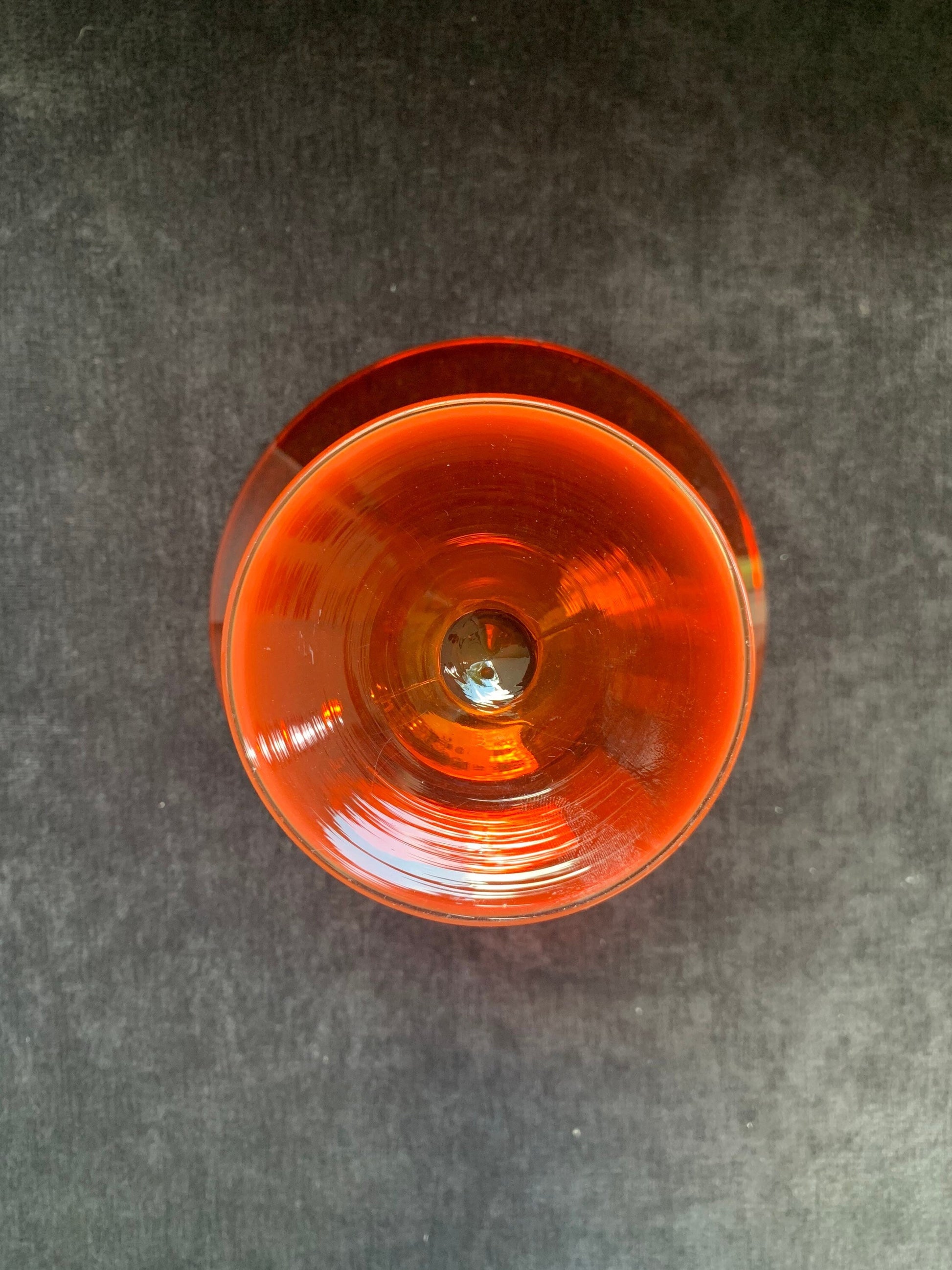 The 1950s saw a renewed interest in glass making and decorative glassware. Bright and vibrant colors were very popular with the mid century modern crowd. Making the decorative glass functional was essential. Ashtrays, drinking glasses of all shapes and sizes, candy dishes, paper wieghts and more filled the market place. Out Flambe candy dish demonstrates the old being new again, as the Flambe look had been popular in fancy glass items at the turn of the century, and returned for a mid century run of popularity. It would look great sitting on a modern coffee table with a few architecture magazines. Measures 5 inches tall and 6 inches in diameter **Our antique items will naturally have signs of wear, age, and production imperfections. We will mention any cracks, crazing, or chips in our descriptions. We consider our photos to be part of our descriptions, so please thoroughly examine our photos for any imperfections we may have missed. Questions welcome. Thanks for shopping!