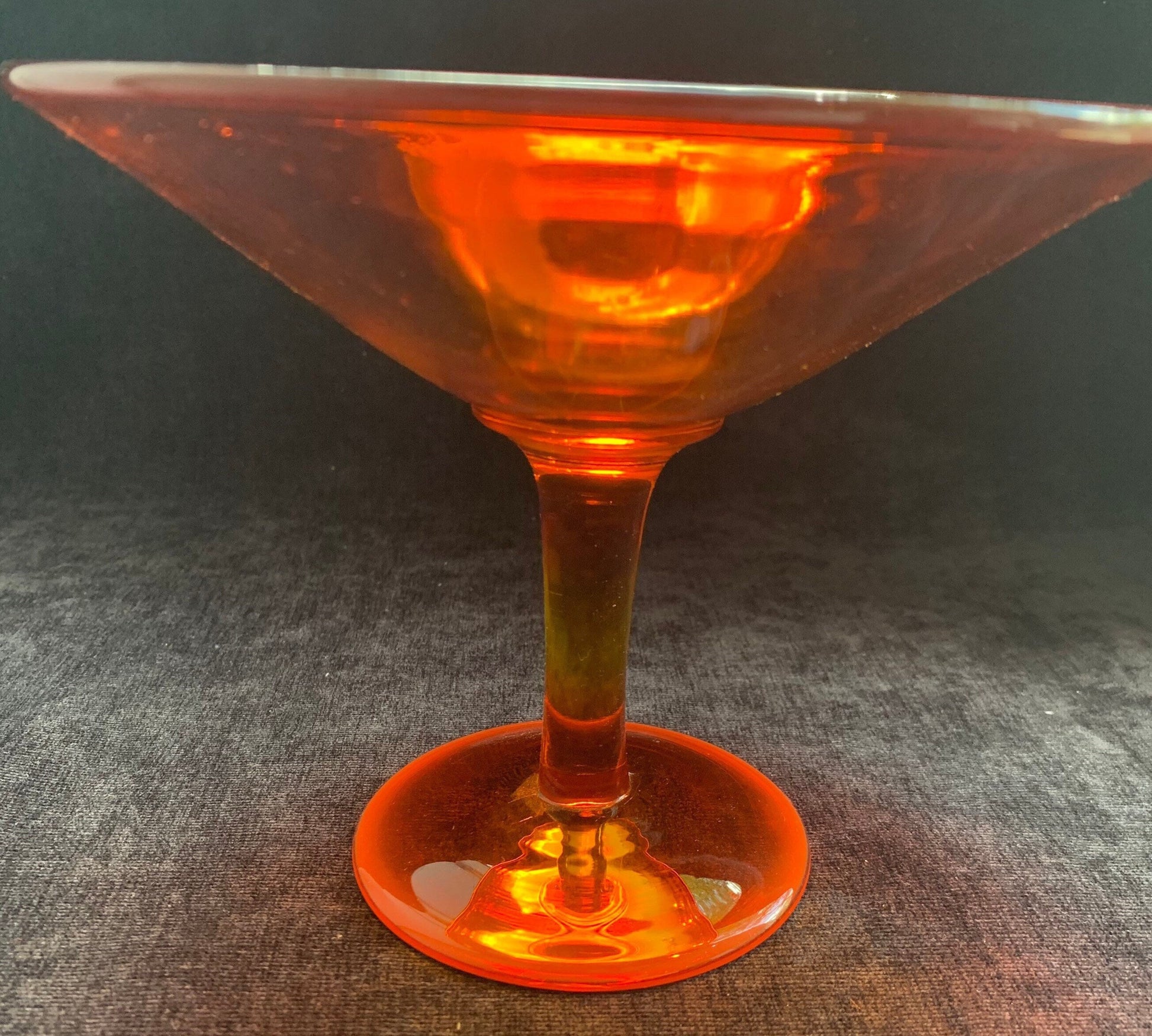 Red and yellow Glass, Flambe Dish, Flambe Pedestal Candy Dish, Mid Century Modern